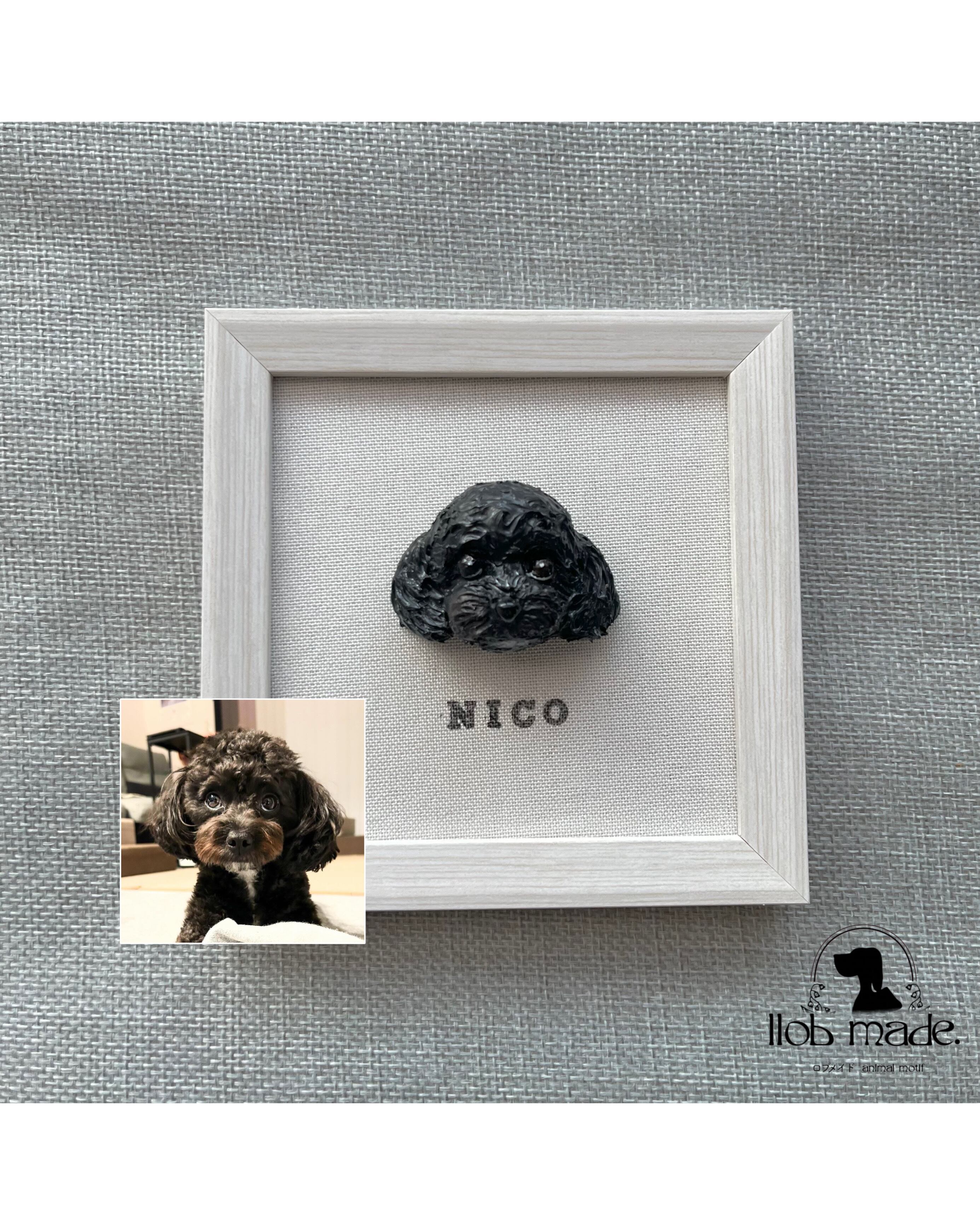 石粉粘土をベースに作成した存在感あるわんちゃんの額縁です ˊ˗