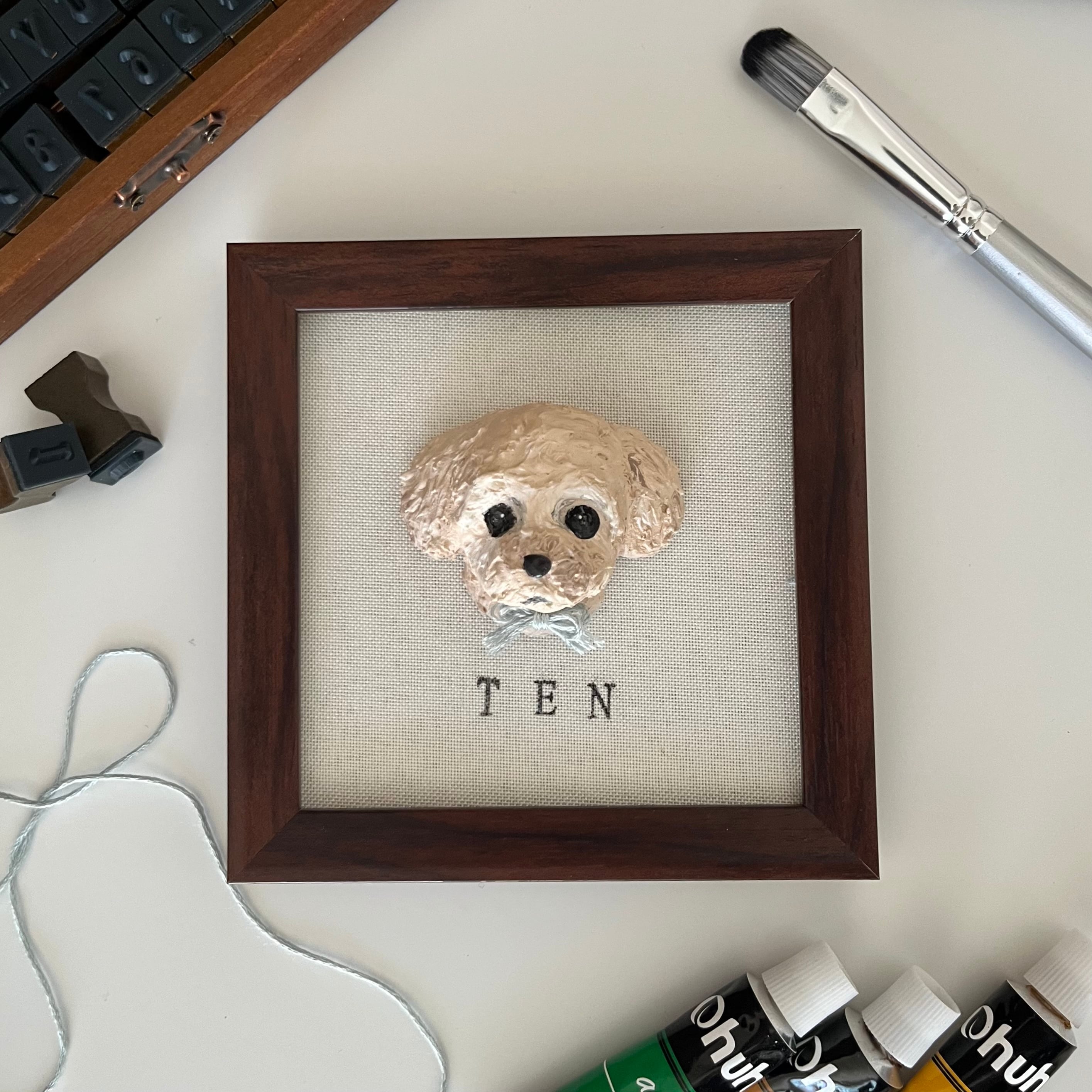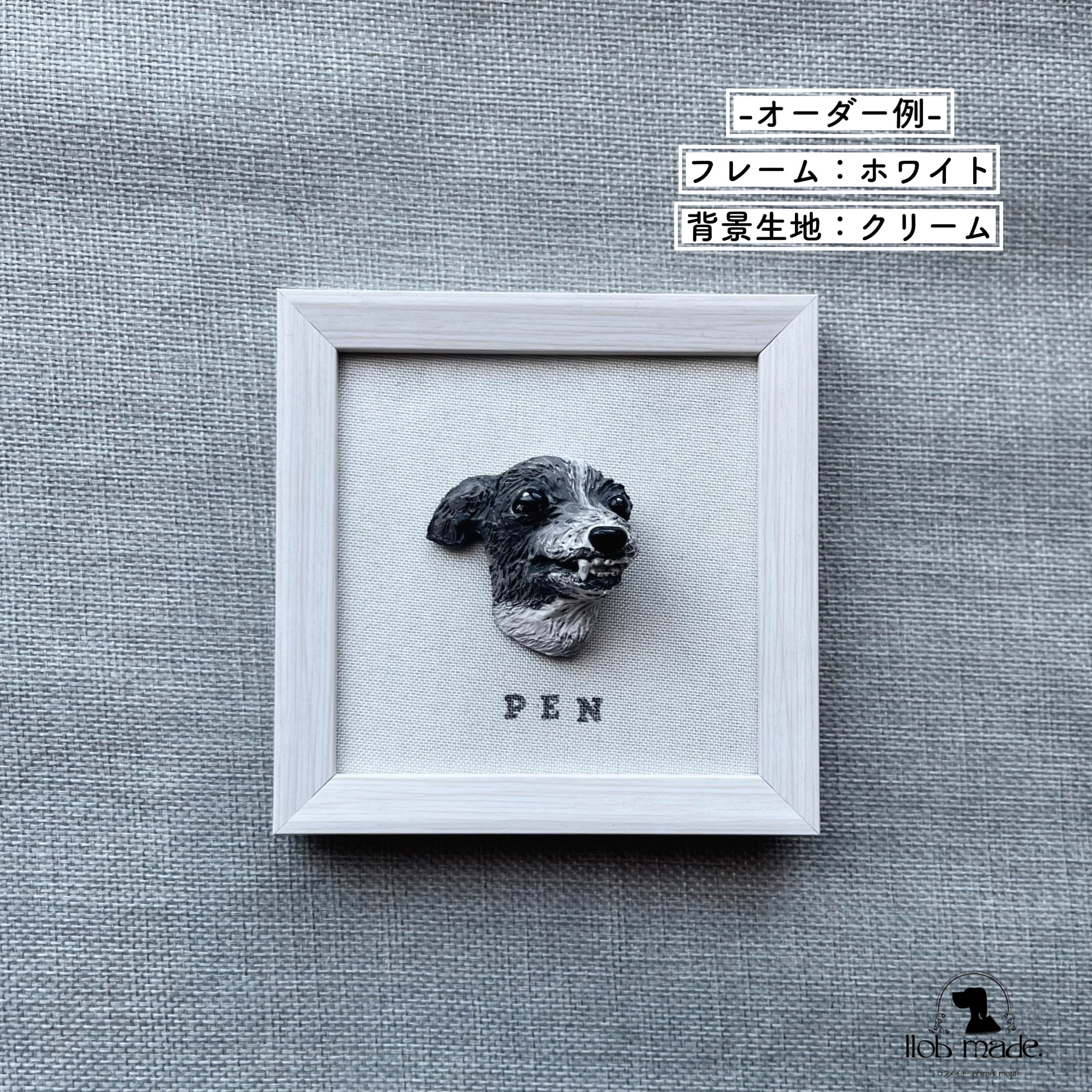 石粉粘土をベースに作成した存在感あるわんちゃんの額縁です ˊ˗